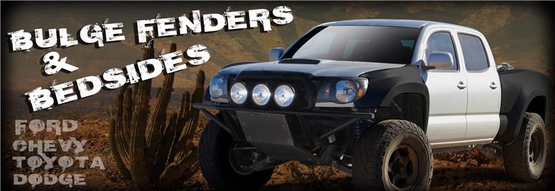 We just got a few spy shots of the new Extreme Dimensions Duraflex Trophy Truck style bedsides for the 2005+ Toyota Tacoma. These baja style Tacoma fenders have cutouts for the factory taillights and come finished in a black primer. The Duraflex material is more flexible than other brands fiberglass and can take a few hits.